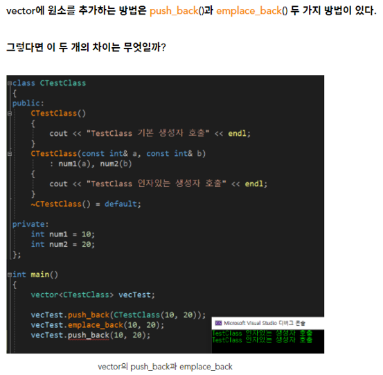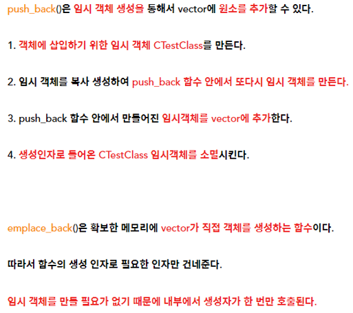 emplace_back은 생성자의 인자들만 넣어주면 알아서 인자에 맞는 생성자를 불러서 객체를 생성한다.