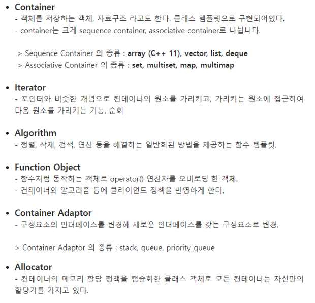 STL은 표준 C++ 라이브러리 (Standard Template Library)