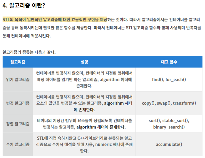 프로그램에 필요한 자료구조와 알고리즘을 Template로 제공하는 라이브러리