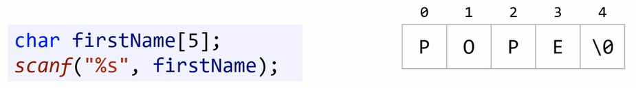 scanf는 char*를 받음. character array는 char pointer. char*를 받는데 그것의 길이를 알 수 없으니 무조건 읽음. 이걸 해결하려면?
