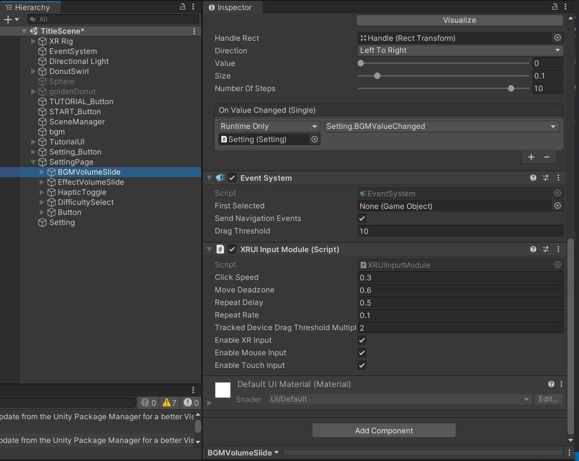 그래서 SettingPage - BGMVolumeSlide안에 있는 Event System을 지워줌